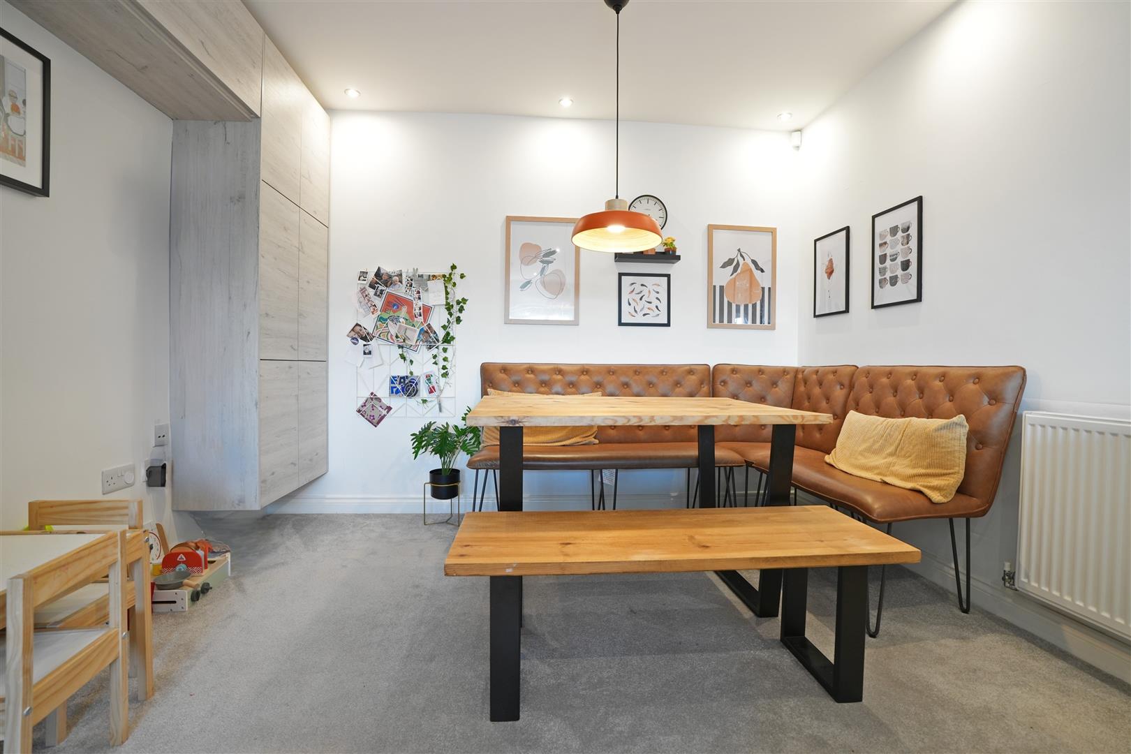 Dining Kitchen - 6.352 x 3.261 (20'10" x 10'8") - Fitted kitchen with wall and base units. Stainless steel one bowl sink. Eye level electric oven. Induction hob. Stainless steel cooker hood. Integrated washing machine. Integrated dishwasher. Integrated fridge / freezer. Integrated microwave. Radiator. UPVC double glazed window to front elevation.