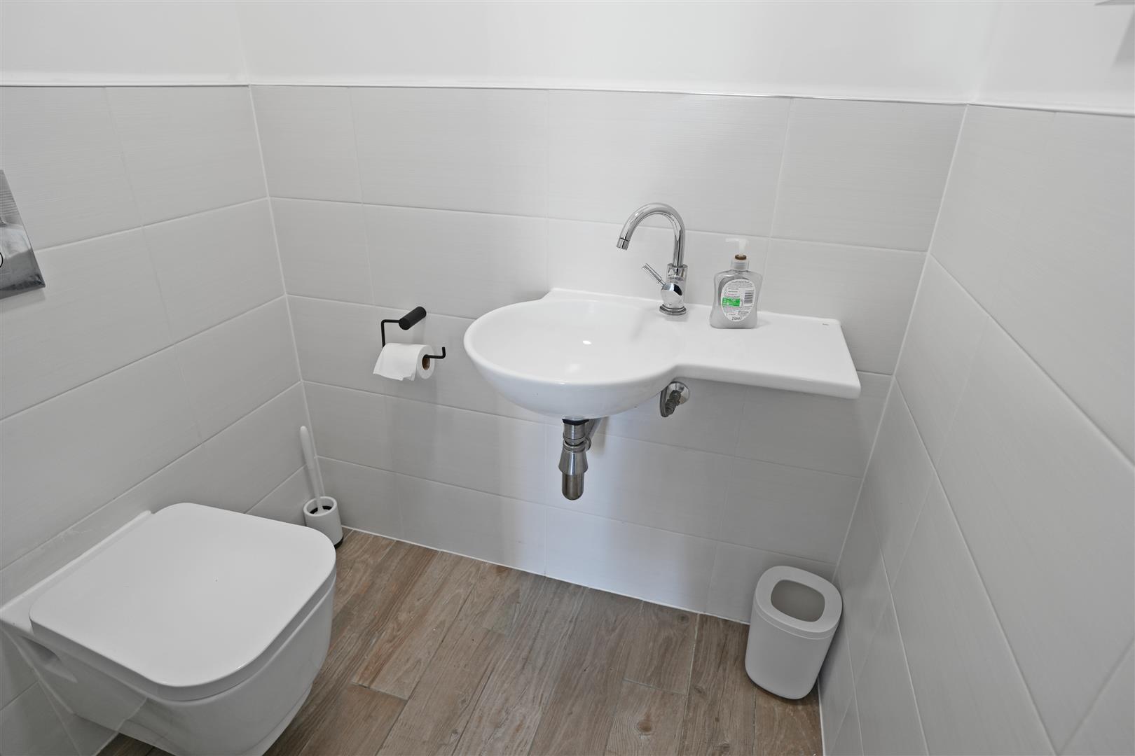 Cloakroom - Wash hand basin. Low flush W.C. Chrome towel radiator. Extractor fan.