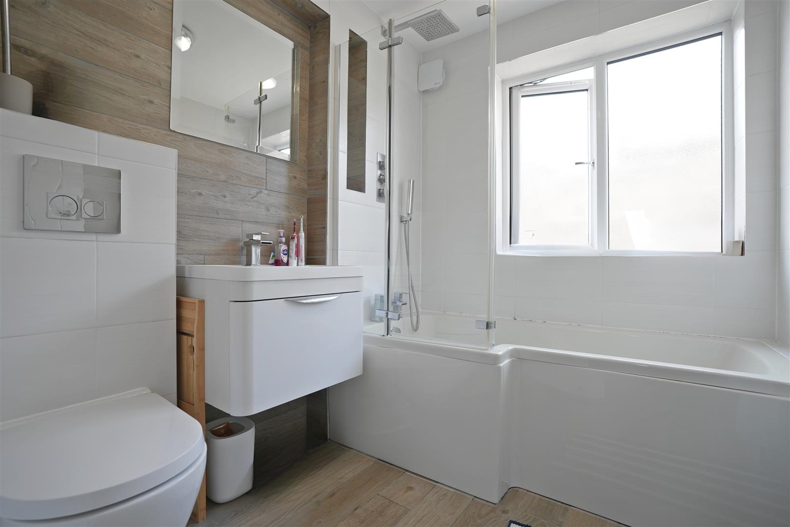Bathroom - Wash hand basin. Low flush W.C. Bath with mixer taps and shower over. Fully tiled. Chrome towel radiator. Extractor fan. UPVC double glazed window to front elevation.