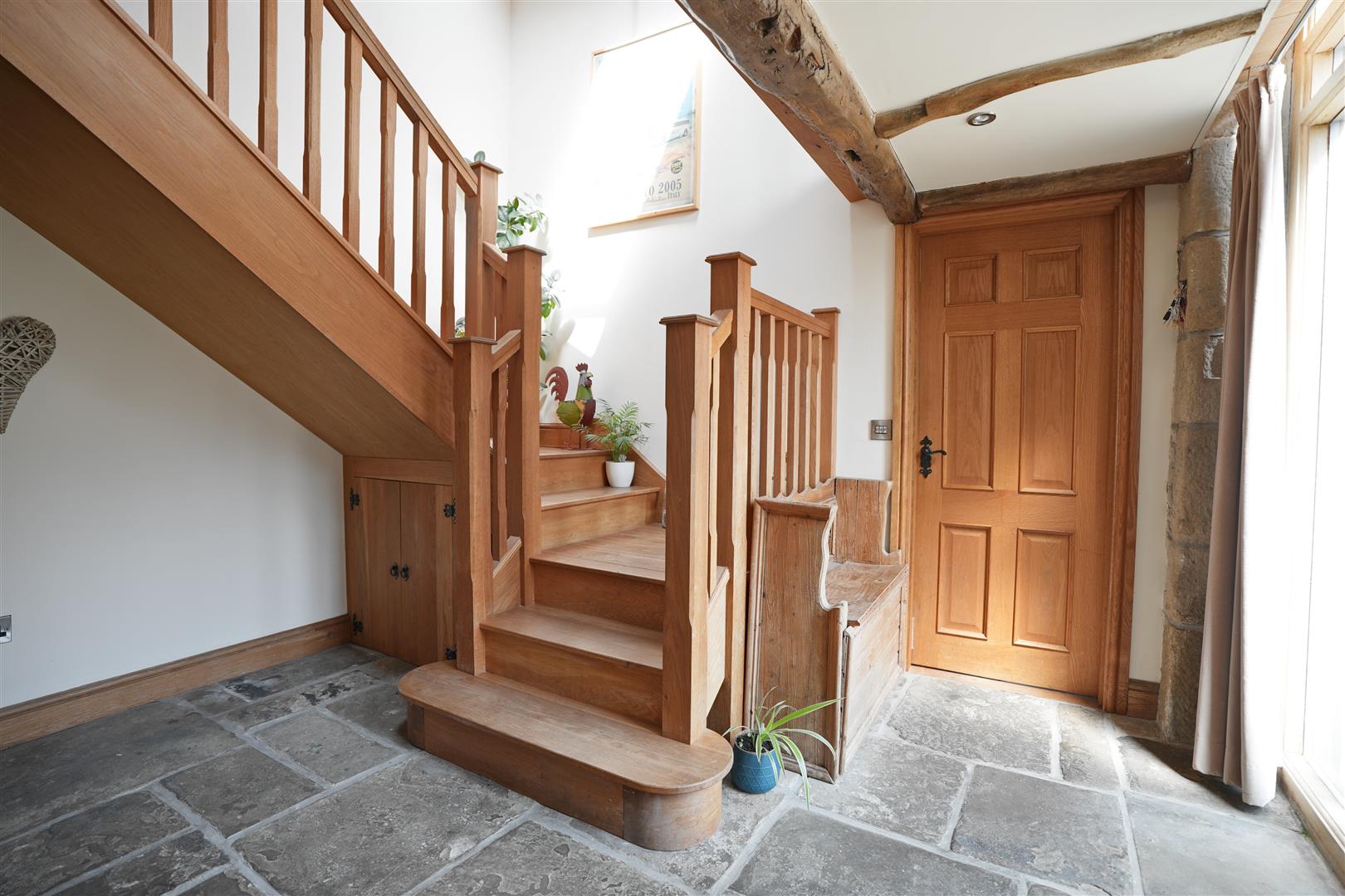 Entrance Hall - Yorkshire Stone floor. Wooden double glazed window to front elevation. Wooden double glazed door to front elevation.