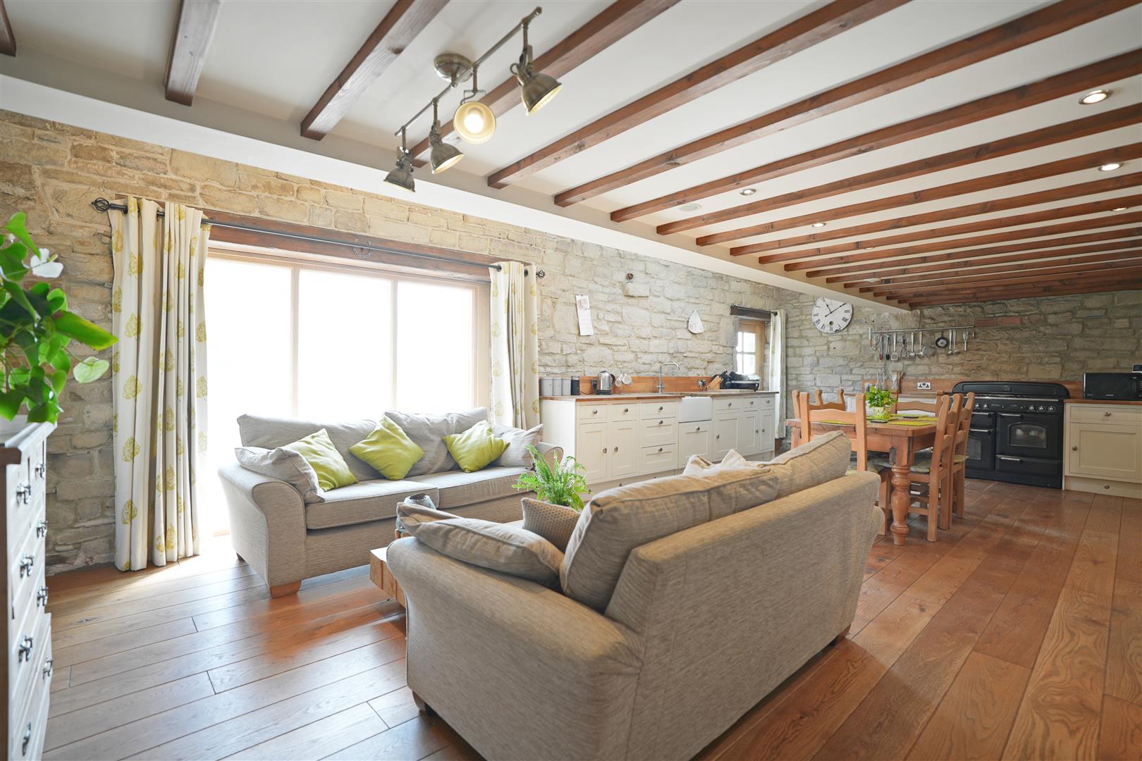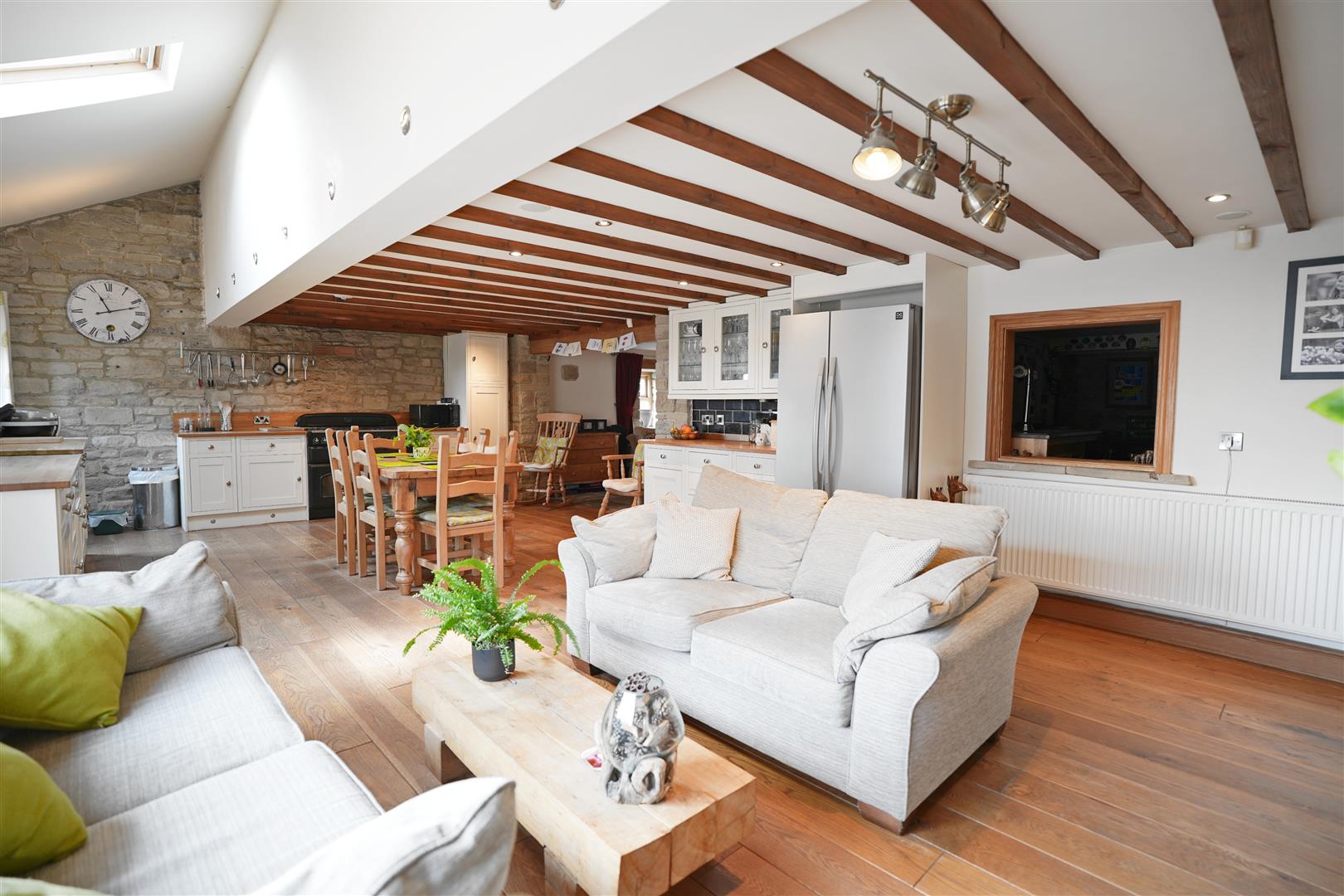 Smithies Barn presents a rare opportunity to acquire a beautifully converted four bedroom, stone barn offering generous and versatile living space, brimming with period charm and modern convenience. Thoughtfully presented throughout, this remarkable home showcases a wealth of original features including exposed stone walls, heavy timber ceiling beams, and traditional details that pay homage to its agricultural heritage.