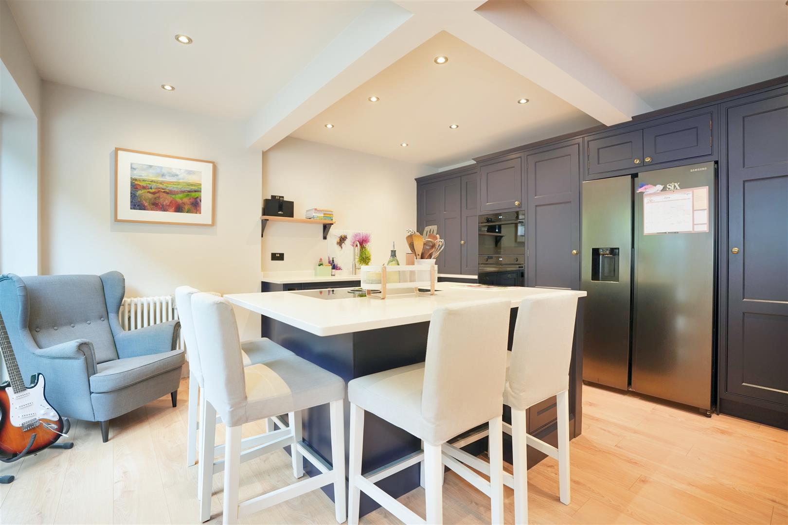 Living / Dining Kitchen - 4.425 x 6.473 (14'6" x 21'2") - Fitted kitchen with wall and base units. Island. Composite, undercounter, one and a half bowl sink. Quartz work surfaces. Electric, eye level double oven. Induction hob. Down draft extractor. Integrated dishwasher. Space for American fridge / freezer. Two traditional style radiators. Composite door to rear elevation. UPVC double glazed window to rear elevation.