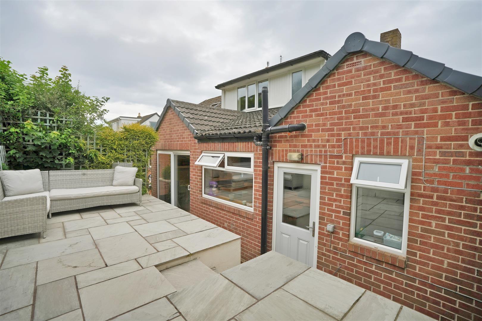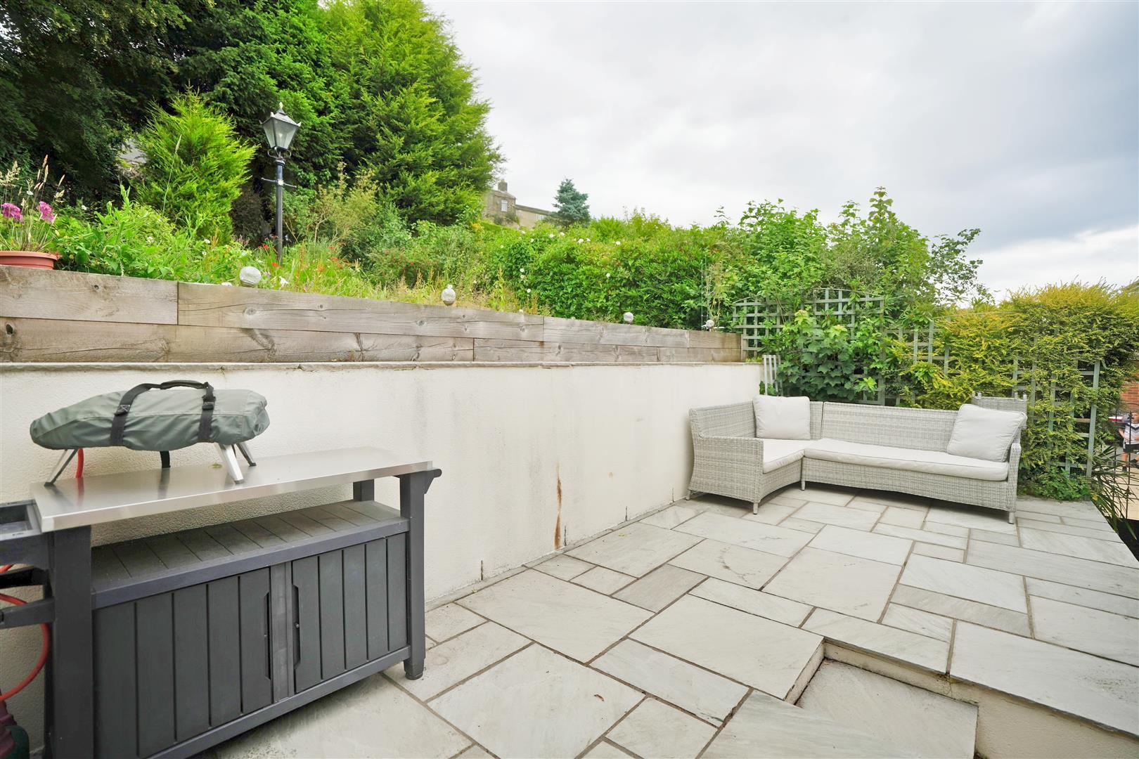 Rear Garden - Extensive garden with attractive patio terrace entertaining area. Mature trees and shrubs.